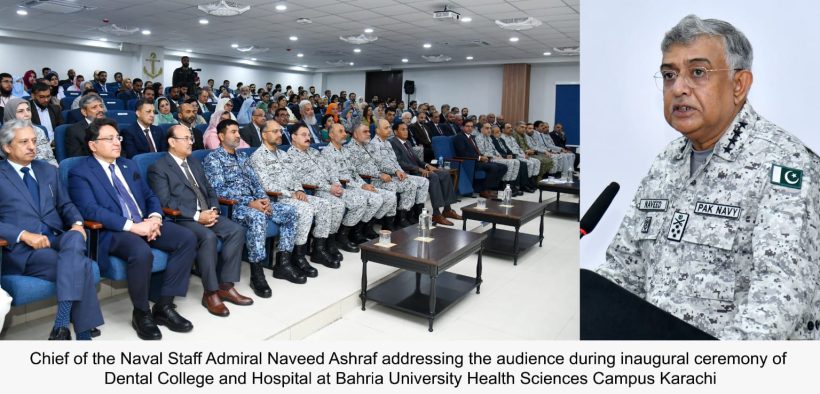 کراچی (ڈیجیٹل پوسٹ) چیف آف دی نیول اسٹاف کا بحریہ یونیورسٹی ہیلتھ سائنسز کیمپس کراچی میں ڈینٹل کالج اور اسپتال کی نئی عمارت کا افتتاح
