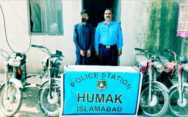 اسلام آباد (ڈیجیٹل پوسٹ) موٹرسائیکل چور گرفتار . اسلحہ 30 بور سمیت 04 مسروقہ موٹرسائیکل برآمد ۔ تفصیلات کے مطابق ایس پی سواں خرم اشرف کی خصوصی ھدایت پر تھانہ ہمک پولیس نے موٹر سائیکل چور ملزم محمد موسی سکنہ ضلع مردان حال ڈھوک کمیٹی چوک راولپنڈی کو گرفتار کرکے ملزم کے قبضہ سے دوران واردات استعمال ہونے والا اسلحہ پسٹل 30بور اور دوران واردات چوری شدہ 04عدد مسروقہ موٹرسائیکل برآمد مزید تفتیش کرنے پر مقدمہ نمبر 133/25بجرم 392ت پ مقدمہ نمبر841/25 اور 888/25 بجرم 381Aت پ تھانہ ہمک اور مقدمہ نمبر320/23 بجرم 381Aت پ تھانہ چونترہ راولپنڈی کا مسروقہ پایاگیا ہے ملزم سے مزید تفتیش جاری ہے