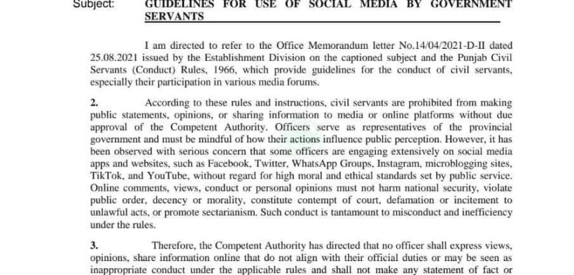 سول سرونٹس کو سوشل میڈیا پر بیانات، رائے یا معلومات شیئر کرنے کے لئے محتاط رہنے کی بھی ہدایت کردی