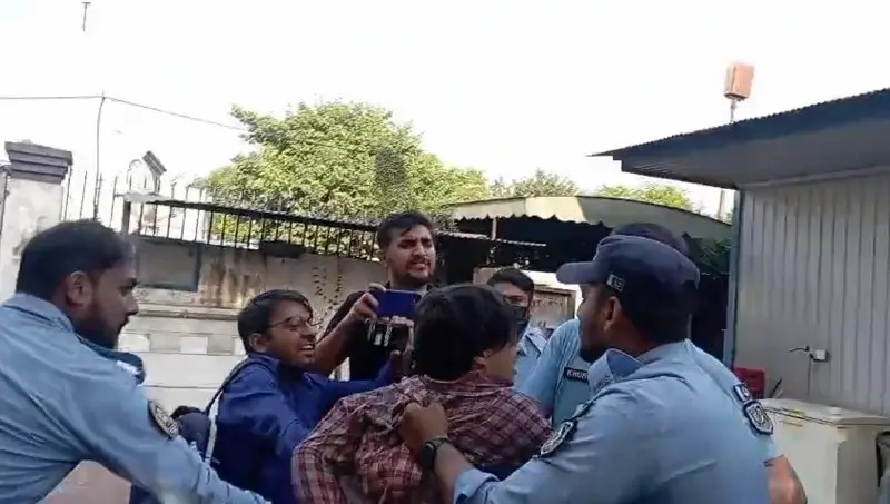 اسلام آباد (ڈیجیٹل پوسٹ) اسلام آباد میں پولیس کشمیر ایکشن کمیٹی کےمظاہرین کو گرفتار کرنے کیلئے پریس کلب میں داخل، صحافیوں پر تشدد، کیمرا توڑ دیا , پی ایف یو جے سراپا احتجاج, وزیر مملکت برائے داخلہ طلال چوہدری کی واقعے پر غیر مشروط معافی، وزیر داخلہ محسن نقوی نے انٹرنل انکوائری کا حکم دے دیا ہے۔تفصیلات کے مطابق آزاد کشمیر میں تشدد کے خلاف چند مظاہرین نیشنل پریس کلب کے باہر احتجاج کر رہے تھے، پولیس اہلکاروں کے وہاں پہنچنے پر کچھ مظاہرین پریس کلب کے اندر چلے گئے، جنہیں گرفتار کرنے کے لیے پولیس اہلکار بھی زبردستی نیشنل پریس کلب کے اندر گھس گئے۔ اس دوران اسلام آباد پولیس اہلکاروں نے نہ صرف مظاہرین کو گرفتار کیا بلکہ اندر موجود صحافیوں اور کلب ملازمین پر بھی تشددکیا اور ایک فوٹو گرافر کا کیمرا بھی توڑ دیا جبکہ پولیس اہلکاروں نے کیفے ٹیریا میں توڑ پھوڑ بھی کی۔دریں اثنا، کونسل آف پاکستان نیوز پیپر ایڈیٹرز (سی پی این ای)، ایسوسی ایشن آف الیکٹرانک میڈیا ایڈیٹرز اینڈ نیوز ڈائریکٹرز (ایمنڈ) اور پاکستان فیڈرل یونین آف جرنلسٹس (پی ایف یو جے) نے اپنے مشترکہ بیان میں اسلام آباد پریس کلب پر پولیس کے دھاوے کی مذمت کی ہے۔