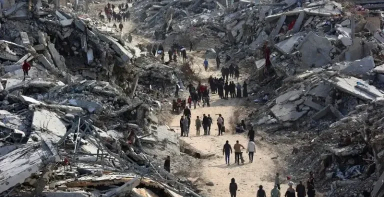 غزہ (ڈیجیٹل پوسٹ) جنگ بندی کے بعد اسرائیلی انخلا، بے گھر فلسطینی تباہ شدہ گھروں کی طرف لوٹنے لگے