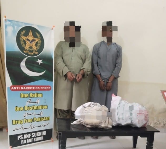 شکار پور روڑ سکھر سبزی منڈی کے قریب بس میں سوار 2 مسافروں کے قبضے سے 24 کلوگرام چرس اور 7 کلوگرام آئس برآمد۔ ملزمان گرفتار