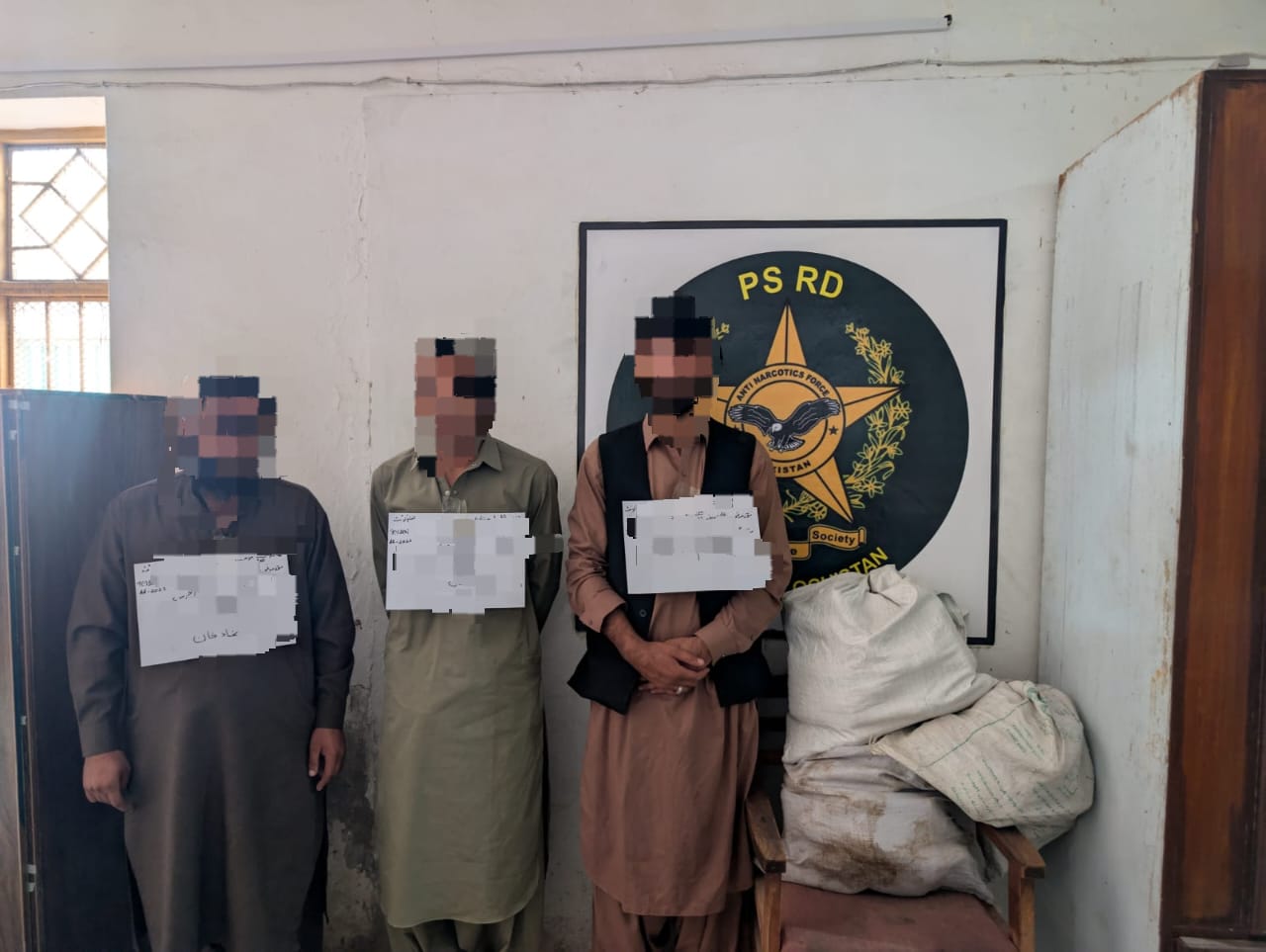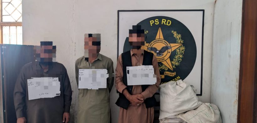 جبلِ نور بس اسٹینڈ کوئٹہ کے قریب رکشہ سے 45 کلوگرام چرس برآمد ۔3 ملزمان گرفتار