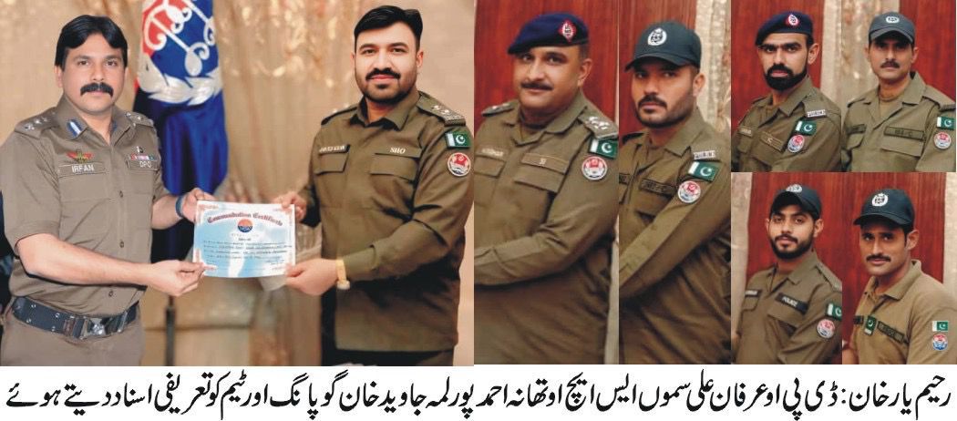 رحیم یارخان (ڈیجیٹل پوسٹ) / کامیاب پولیس مقابلہ پر ڈی پی او عرفان علی سموں کا ایس ایچ او احمد پور لمہ جاوید خان گوپانگ اور ٹیم کو 1 لاکھ روپے نقد انعام تعریفی اسناد سے بھی نوازا