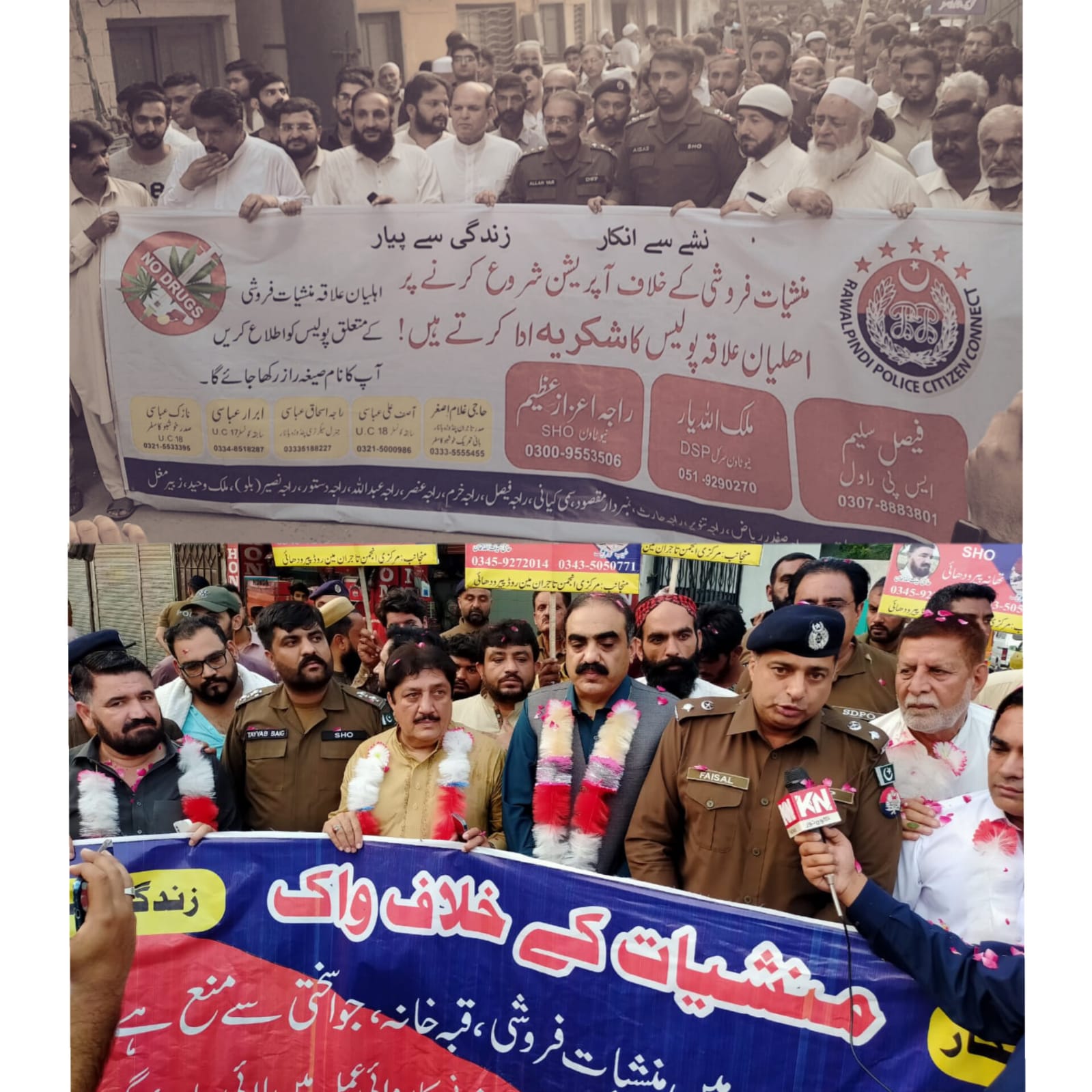 سی پی او سید خالد ہمدانی کی ہدایت پر راولپنڈی پولیس کی مختلف علاقوں میں منشیات کے حوالے سے آگاہی واکس،واکس میں ایس ایس پی فیصل سلیم،ایس ڈی پی اونیوٹاؤن ملک اللہ یار،ایس ایچ اونیو ٹاؤن،ایس ایچ اوپیرودھائی سمیت انجمن تاجران کے نمائندگان کی شرکت،گزشتہ ایک ہفتہ کے دوران منشیات فروشوں کے خلاف کریک ڈاؤن کرتے ہوئے 100سے زائدبڑے منشیات فروشوں کو گرفتار کر کے 03من سے زائد چرس برآمد کی گئی،تفصیلات کے مطابق سی پی او سید خالد ہمدانی کی ہدایت پر راولپنڈی پولیس کی مختلف علاقوں میں منشیات کے حوالے سے آگاہی واکس،واکس میں ایس ایس پی فیصل سلیم،ایس ڈی پی اونیوٹاؤن ملک اللہ یار،ایس اورنیو ٹاؤن،پیرودھائی سمیت انجمن تاجران کے نمائندگان نے شرکت کی،آگاہی واکس تھانہ نیوٹاؤن اور تھانہ پیرودھائی کے علاقہ میں کی گئی،واکس کا مقصد منشیات سے ہونے والے نقصانات کے بارے میں عوام کو آگاہ کرنا تھا،معاشرہ خصوصا والدین اپنی ذمہ داری نبھائیں،والدین خصوصابچوں اور نوجوان نسل پر نظر رکھیں، منشیات فروشی کی اطلاع 15پر دیں اپکا نام صیغہ راز میں رکھا جائے گا، واکس کے دوران مختلف سیاسی و سماجی شخصیات نے باری باری اپنے خیالات کا اظہار کرتے ہوئے راولپنڈی پولیس کو منشیات کے خاتمے کے سلسلہ میں بھر پور کارروائی کرنے اور آگاہی مہم چلانے پر خراج تحسین پیش کیا۔