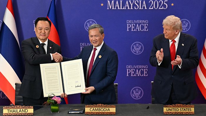 دوسری جانب کمبوڈیا کی حکومت نے کہا ہے کہ وہ امن معاہدے پر کاربند ہے۔ اس معاہدے کا مقصد جولائی میں ہونے والی سرحدی جھڑپوں کے بعد پائیدار امن لانا تھا، ان جھڑپوں میں 40 سے زائد افراد ہلاک اور 3 لاکھ سے زیادہ شہری بے گھر ہوئے تھے۔