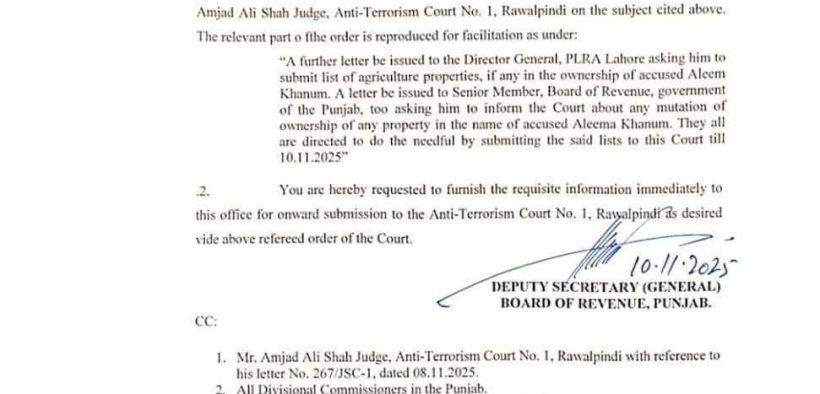 علیمہ خان کی جائیدادوں کا تمام ریکارڈ اے ٹی سی کورٹ راولپنڈی کو ارسال کیا جائے گا