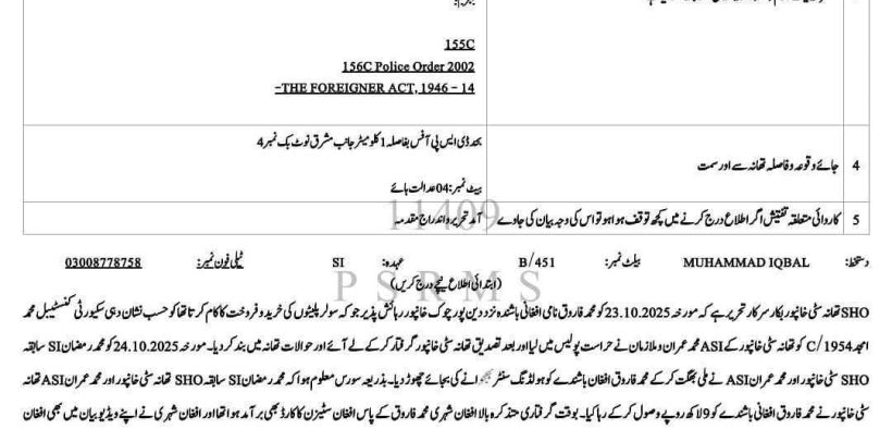 گجرانوالہ (ڈیجیٹل پوسٹ) 10 ہزار روپے انعام کے لیے افغانی شہری پکڑوانے والے شہری کو پولیس نے انعام دینے کے بجائے افغانی سے ہی 6 لاکھ روپے لے کر چھوڑ دیا