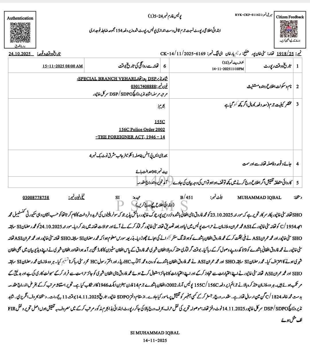 شہری نے موٹر سائیکل نکالا اور سیدھا سی پی او گجرانوالہ کے پاس گیا، ثبوت دکھائے، اور سی پی او صاحب نے فوراً ایس ایچ او سمیت پانچ اہلکاروں طلب کر کے گرفتار کر لیا