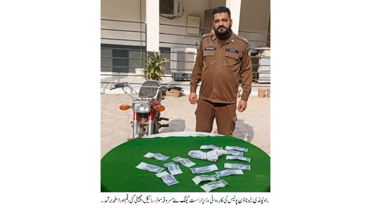 راولپنڈی (ڈیجیٹل پوسٹ) ایس ایچ او تھانہ نیوٹاؤن لقمان پاشا کی ہمراہ پولیس ٹیم کارروائی، سٹریٹ کرائم اور موٹر سائیکل چوری کی وارداتوں میں ملوث 2 رکنی گینگ گرفتار،مسروقہ موٹر سائیکل،چھینی گئی رقم 13 ہزار روپے اور اسلحہ برآمد۔تفصیلات کے مطابق نیوٹاؤن پولیس نے کارروائی کرتے ہوئے سٹریٹ کرائم اور موٹر سائیکل چوری کی وارداتوں میں ملوث 2 رکنی گینگ کو گرفتار کرلیا،مسروقہ موٹر سائیکل،چھینی گئی رقم 13 ہزار روپے اور اسلحہ برآمد ہوا،ایس پی راول سعد ارشد کاکہنا تھا کہ زیرحراست افراد کو ٹھوس شواہد کے ساتھ چالان عدالت کیا جائے گا،شہریوں کوقیمتی اثاثہ سے محروم کرنے والے افراد قانون کی گرفت سے نہیں بچ سکتے۔