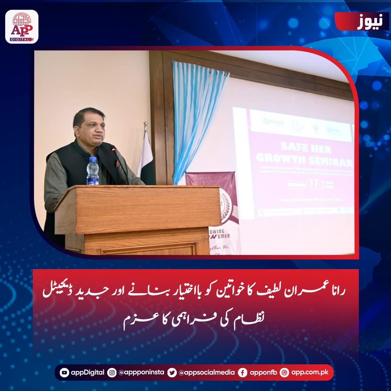 اسلام آباد (ڈیجیٹل پوسٹ) سینئر صحافی، اینکر پنکر پرسن اور چیئرمین پیاس انٹرنیشنل ہیومن رائٹس رانا عمران لطیف نے کہا ہے کہ پاکستانی خواتین کی ترقی اور تحفظ ہماری اولین ترجیح ہے