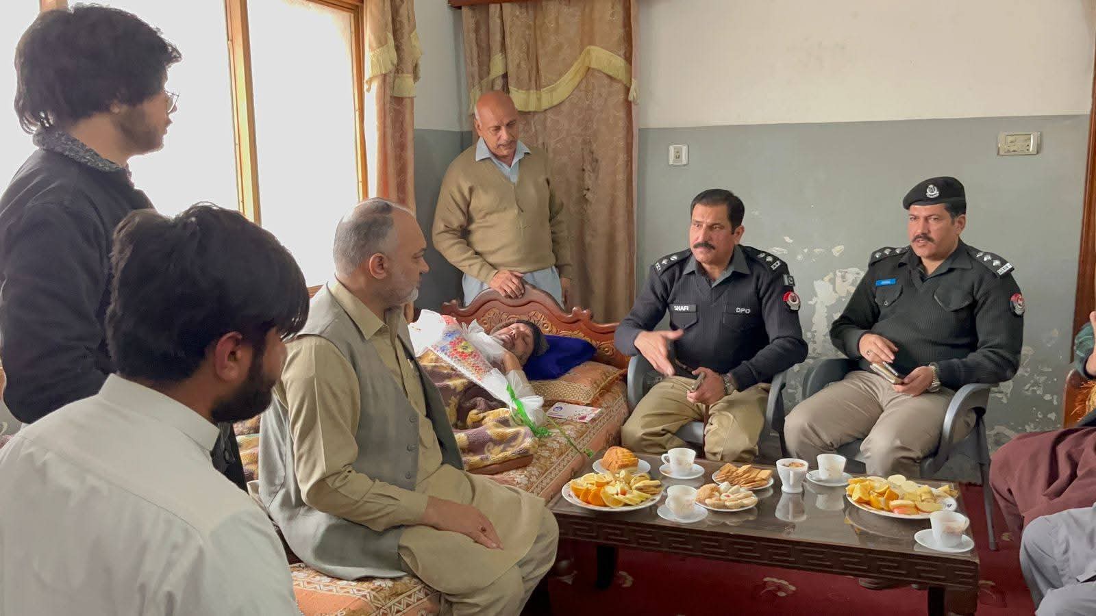 ڈی پی او ہری پور نے زخمی کنسٹیبل محمد اشفاق کے اہل خانہ سے بات چیت کرتے ہوئے کہا کہ زخمی کنسٹیبل محمد اشفاق کے طبی دیکھ بھال کو ہر صورت یقینی بنایا جائے گا۔میرے دفاتر کے دروازے آپ کے لیے ہمہ وقت کھلے کسی بھی پریشانی کی صورت میں تشریف لائیں۔