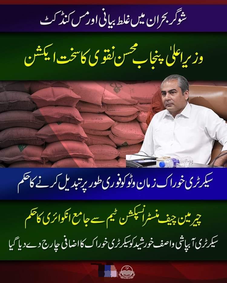 BREAKING NEWS National لاہور: شوگر بحران میں غلط بیانی اور مس کنڈکٹ وزیر اعلی پنجاب محسن نقوی کا سخت ایکشن Dailydigitalpost September 7, 2023 Share لاہور شوگر بحران میں غلط بیانی اور مس کنڈکٹ وزیر اعلی پنجاب محسن نقوی کا سخت ایکشن #caretakercmpunjab #mohsinnaqvispeed #inaction #missconduct #transfer #secertary #food