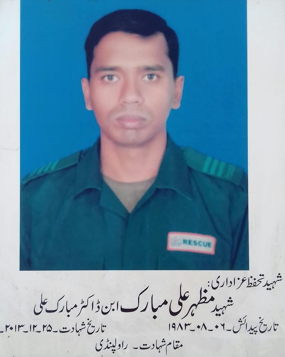شہید تحفظ عزاداری مظہر علی مبارک شہید کی خدمات کو ہمیشہ یاد رکھا جائے گا اللہ تعالٰی نے قرآن مجید میں ارشاد فرمایا کہ شہید کو مردہ مت کہوانکو رزق اللہ عطا کرتا ھے۔ 21 صفر کو مسجد سخی شاہ چن چراغ میں برسی مظہر علی مبارک شہید پر مجلس عزا سے خطاب کرتے ہوئے مقررین خطیب مسجد سخی شاہ چن چراغ سید سجاد گردیزی , ذاکر اہلبیت رئیس رضوی اور دیگر نے کہا ہے کہ ھر مسلمان دعا کا طلبگار ہے شہدا نے اپنے خون سے امن کی شمع روشن کی ھےواضع رھے کہ دہشتگردی کے ایک واقعہ میں ریسیکو1122 کے ایمرجنسی میڈیکل ٹیکنیشن مظہر علی مبارک سال 2013 میں شہید ھو گئےتھے اس موقع پر مجلس عزا کے بعد اجتماعی دعا منعقد ھوئ مقررین نے کہا کہ پاکستان کی سلامتی اور ترقی کے لئے ضروری ہے کہ اتحاد بین المسلمین کا پرچار کیا جائے شہید مظہر علی مبارک اتحاد بین المسلمین کے داعی تھے انکی مذہبی ۔سماجی خدمات ہمیشہ یاد رکھی جائیں گی شہید مظہر علی مبارک اتحاد بین المسلمین کے داعی تھے انکی مذہبی ۔سماجی خدمات ہمیشہ یاد رکھی جائیں گی , دکھی انسانیت کی خدمت کے مشن کو آگے بڑھایا جائے گا انکی مذھبی خدمات ہم سب کیلئے نمونہ ہے ۔ شہید تحفظ عزاداری مظہر علی مبارک شہید ڈاکٹر مبارک علی زوار مرحوم بانی یکم محرم الحرام سیج مبارک و تعزیہ عاشورہ محرم الحرام رسول نگر کے بیٹے تھے،