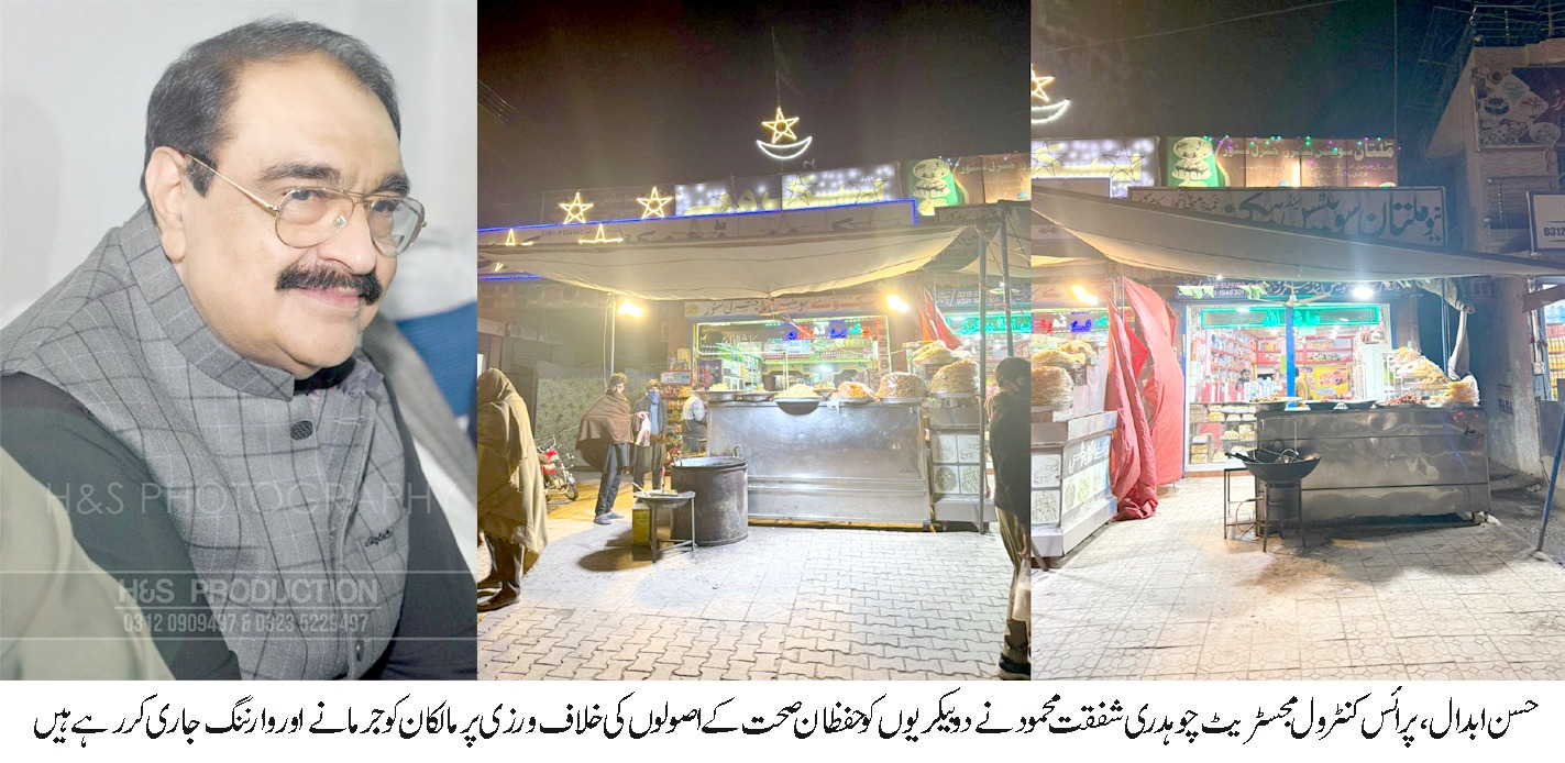 وزیراعلیٰ پنجاب مریم نواز کے ویژن، کمشنر راولپنڈی اور ڈپٹی کمشنر اٹک راؤ عاطف رضا کی ہدایات پر حسن ابدال میں پرائس کنٹرول مجسٹریٹ و تحصیلدار چوہدری شفقت محمود نے مؤثر کارروائیاں کرتے ہوئے گزشتہ روز دو بیکریوں پر صفائی کے ناقص انتظامات اور مٹھائی کھلی رکھنے پر جرمانے عائد کیے اور سخت وارننگ جاری کی۔