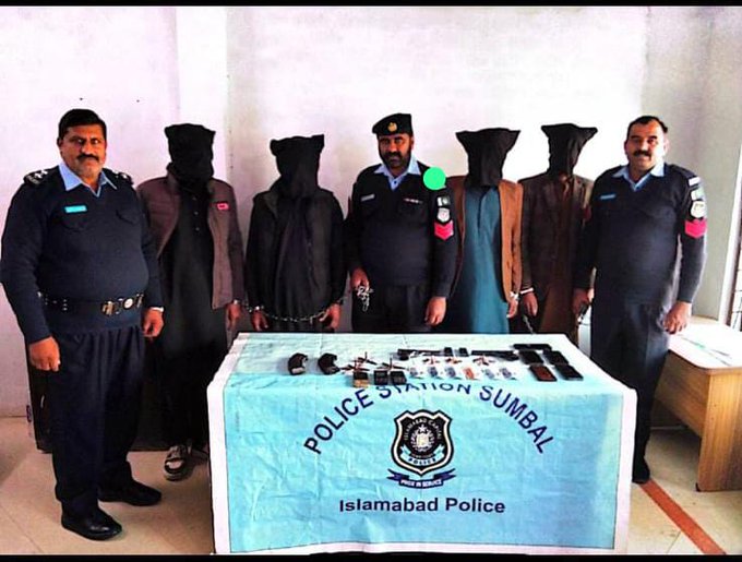 تھانہ سنبل پولیس ٹیم نے راہزنی کی متعدد وارداتوں میں ملوث منظم گینگ کے 04 ارکان گرفتار لئےـ ملزمان کے قبضے سے چھینی گئی نقدی، لاکھوں روپے مالیت کے قیمتی موبائل فونز برآمد۔ ملزمان سے وارداتوں میں استعمال ہونے والا اسلحہ معہ ایمونیشن برآمد ۔گرفتار ملزمان کا اسلحہ کے زور پر نقدی اور دیگر قیمتی اشیاء چھیننے کی متعدد وارداتوں کا انکشاف۔ گرفتار ملزمان کو قرار واقعی سزا دلوانے کے لیے تمام قانونی تقاضے پورے کیے جائیں گے۔ ڈی آئی جی اسلام آباد