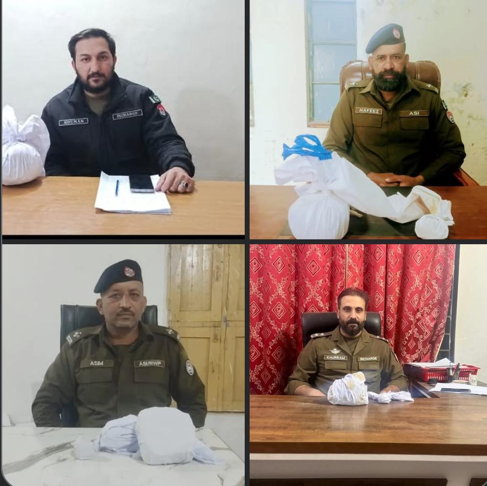 04 افراد گرفتار ، 06 کلو سے زائد چرس برآمد،