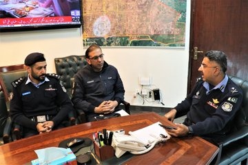 اسلام اباد /آئی جی سید علی ناصر رضوی کی ایس ایس پی انویسٹیگیشن محمد عثمان طارق بٹ اور دیگر افسران کے ساتھ میٹنگ۔آئی جی اسلام آباد نے پبلک سروس ڈیلیوری کو اولین ترجیح پر رکھتے ہوئے شہریوں کو مستفید کرنے سمیت جرائم پیشہ عناصر کیخلاف گھیرا مزید تنگ کرنے اور سنگین نوعیت کے مقدمات میں تفتیش کو مزید بہتر کرنے کے لئے احکامات جاری کیے