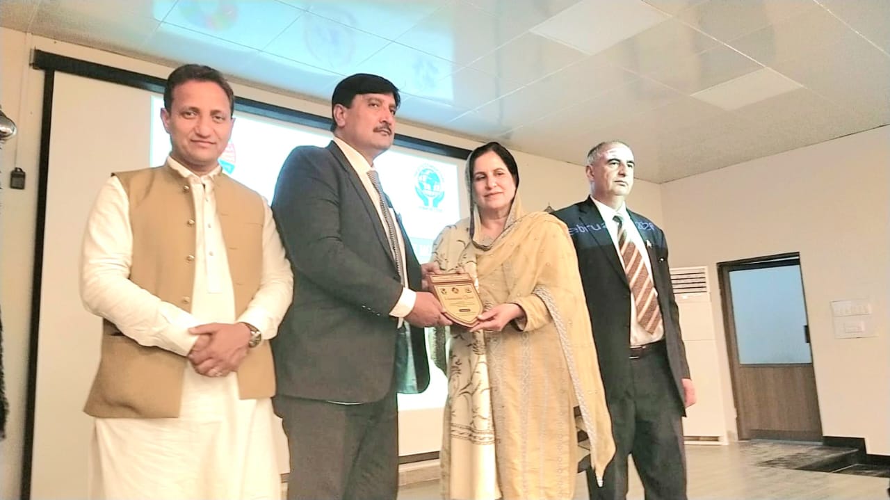 اسلام آباد (ڈیجیٹل پوسٹ) وزیر حکومت آزاد کشمیر محترمہ نبیلہ ایوب انٹرنیشنل ہیومن رائٹس کی جانب سے بہترین صحافتی خدمات پر سنئیر صحافی سابق صدر راولپنڈی اسلام آباد یونین آف جرنلسٹس طارق علی ورک کو ایوارڈ دی رہی ہیں اس موقع پر چئیرمین دفاعی کمیٹی قومی اسمبلی سردار فتح اللہ خان ممبر قومی اسمبلی ڈاکٹر شائستہ جدون بھی موجود ہیں