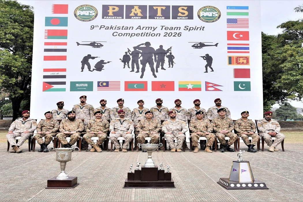 اسلام آباد (ڈیجیٹل پوسٹ) 9واں انٹرنیشنل پاکستان آرمی ٹیم اسپرٹ مقابلہ کھاریاں میں کامیابی سے اختتام پذیر ہوگیا۔ اختتامی تقریب کے مہمانِ خصوصی فیلڈ مارشل چیف آف آرمی اسٹاف اور چیف آف ڈیفنس اسٹاف سید عاصم منیرتھے پاکستان آرمی ٹیم اسپرٹ مقابلہ 60 گھنٹوں پر مشتمل ایک جامع پیٹرولنگ مشق ہے، جس کا مقصد شریک ٹیموں کے درمیان جدید عسکری خیالات، حربی تجربات اور بہترین عملی طریقوں کے تبادلے کے ذریعے پیشہ ورانہ فوجی صلاحیتوں کو فروغ دینا ہے۔ یہ مشق 5 فروری 2026 سے پنجاب کے نیم پہاڑی علاقوں میں منعقد کی گئی، جہاں شرکاء کو ایک حقیقت پسندانہ اور چیلنجنگ آپریشنل ماحول فراہم کیا گیا گزشتہ برسوں میں پاکستان آرمی ٹیم اسپرٹ ایک باوقار اور سخت مقابلے پر مبنی عسکری مشق کے طور پر ابھر چکا ہے، جو شریک ممالک کے درمیان پیشہ ورانہ مہارت، باہمی سیکھنے اور فوجی تعاون کے فروغ میں اہم کردار ادا کر رہا ہے۔ یہ فورم عسکری تعلقات کو مضبوط بنانے کے ساتھ ساتھ مشکل حالات میں باہمی اعتماد، ٹیم اسپرٹ اور بھائی چارے کو فروغ دیتا ہے۔