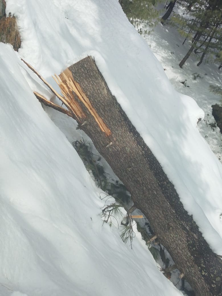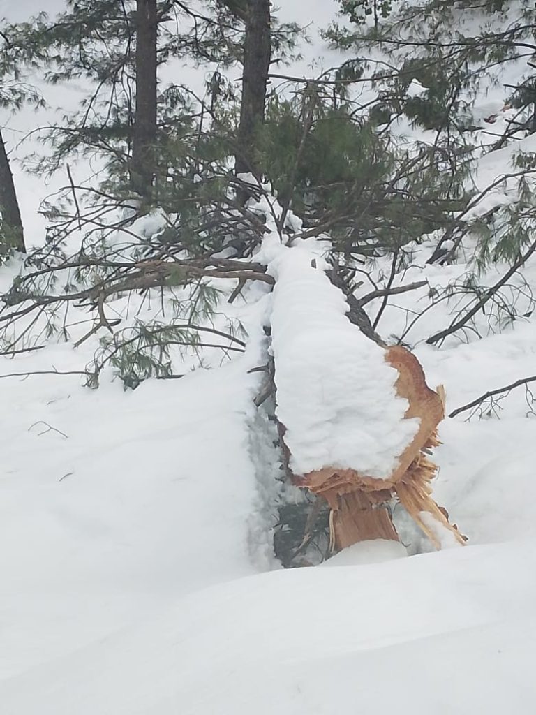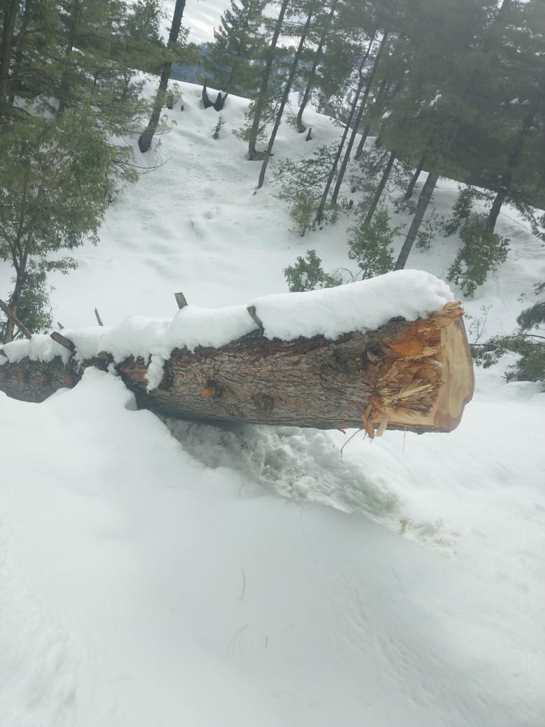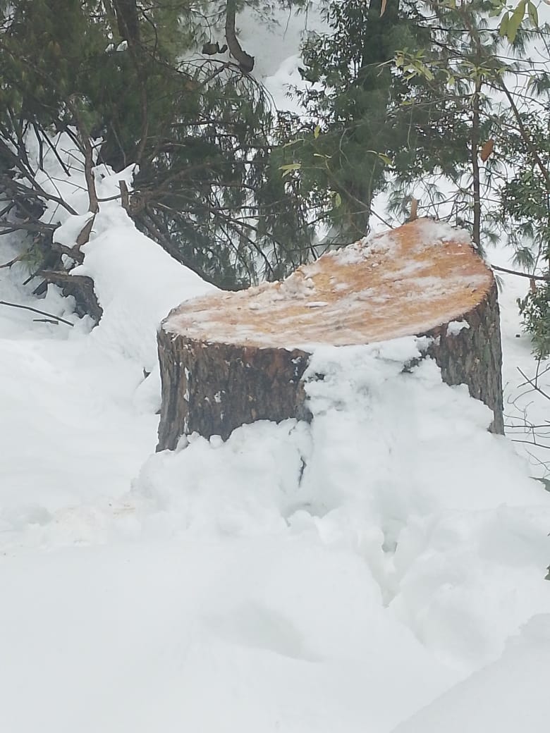 Islamabad (Digital Posts) Illegal felling of trees is being carried out in the darkness of night in the forests of Upper Moradabad, Dingian, Kambart No. 3, Tehsil Chakar, Jhelum Valley district with the connivance of timber mafia and forest department officials. The felling of forests has posed a threat to the lives of wildlife. 7 large valuable trees (Kail) have been cut down from the forests on government land, which is a huge loss for the state and its residents. The felling of forests has posed a threat to the lives of wildlife, and the fear of landslides is also increasing. The people of the area appealed to the Minister for Forests of Azad Kashmir, Sardar Javed Ayub, Secretary Chaudhry Muhammad Farid to take action against the timber mafia and forest department officials and take steps to make the forests of the area safe.
