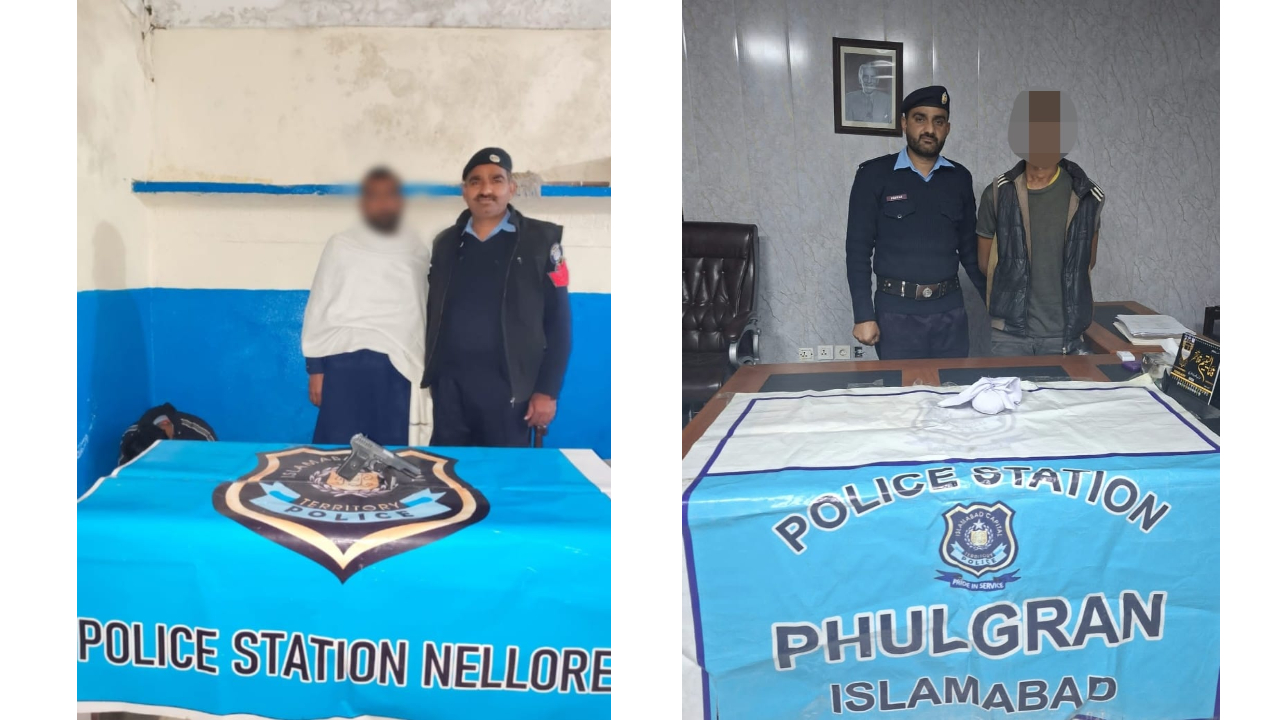 According to the details, the Islamabad Police Sabzi Mandi, Industrial Area, Khanna, Nilore, Phulgran, and Shahzad Town police stations teams arrested 09 accused involved in different criminal activities.Police teams also recovered 580 gram hashish, 430 gram ice, and 06 pistols with ammunition from their possession. Cases have been registered against the arrested accused and further investigations are ongoing.Additionally, during a special campaign launched for the arrest of proclaimed offenders and absconders, various police teams arrested 06 criminals.Following the special directions of IGP Islamabad Syed Ali Nasir Rizvi, the Islamabad Police continues its effective crackdown against crime and criminal elements to ensure the peace and tranquility in the federal capital.Moreover, the Islamabad Police is committed to protecting the lives and property of the residents and no elements will be allowed to disturb public peace. Ensuring peace and protecting citizens remains the top priority of Islamabad Police.Citizens are also urged to report any suspicious activities to the relevant police station or via the emergency helpline “Pucar-15” immediately, so that through mutual cooperation between the police and the public, crime can be eradicated from society.