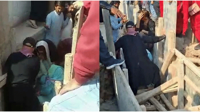 نورین نیازی راولپنڈی کے داہگل ناکے پر زیرتعمیر سیوریج لائن کراس کرتے ہوئے گرگئیں۔