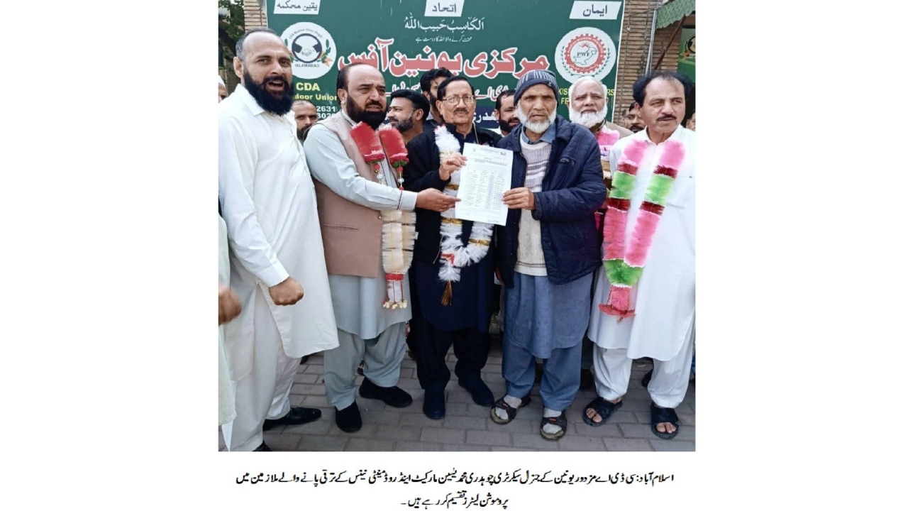 اسلام آباد (ڈیجیٹل پوسٹ) سی ڈی اے کے شعبہ مارکیٹ اینڈ روڈ مینٹی نینس کے درجنوں ملازمین کی ترقی کے آرڈرز جاری کر دیے گئے۔ اس سلسلے میں پروموشن لیٹرز کی تقسیم کی پروقار تقریب مرکزی یونین آفس میں منعقد ہوئی جس میں قائدِ مزدور چوہدری محمد یٰسین نے ترقی پانے والے ملازمین میں پروموشن لیٹرز تقسیم کیے۔تقریب میں مزدور رہنما صوفی محمود علی، اسد محمود، محمد سرفراز ملک، وارث دلیپ، واجد گجر، صفدر نقوی، طارق آفریدی، سی بی اے کمیٹی مارکیٹ اینڈ روڈ مینٹیننس کے چیئرمین چوہدری محمد انور، سپریم ہیڈ تاج کیانی، صدر وقار خان، جنرل سیکرٹری ایاز عباسی، سینئر وائس چیئرمین ملک عدنان، ملک احسان، عمران اللہ، شاہد گجر، زاہد خان، تنویر احمد، ملک اکمل شہزاد، گوہر الٰہی، ملک اسلم سمیت دیگر عہدیداران اور ملازمین کی کثیر تعداد موجود تھی۔اس موقع پر ترقی پانے والے ملازمین نے مزدور یونین کے قائدین کا شکریہ ادا کرتے ہوئے کہا کہ بلاشبہ سی ڈی اے مزدور یونین ہی ملازمین کی نمائندہ تنظیم ہے جو بلاتفریق ان کی خدمت کر رہی ہے۔ انہوں نے امید ظاہر کی کہ یونین پہلے سے بڑھ کر تمام ملازمین کے مسائل ترجیحی بنیادوں پر حل کروائے گی۔تقریب سے خطاب کرتے ہوئے سی ڈی اے مزدور یونین کے جنرل سیکرٹری چوہدری محمد یٰسین نے کہا کہ ریفرنڈم میں کیے گئے وعدوں کی تکمیل جاری ہے اور الحمدللہ اب تک سات ہزار سے زائد فیلڈ اسٹاف کی پروموشنز کرائی جا چکی ہیں جس کی مثال ماضی میں نہیں ملتی۔انہوں نے کہا کہ مزدور یونین نے ادارے کے مالی، بیلدار، والومین اور دیگر فیلڈ اسٹاف جو ایک ہی اسکیل میں ریٹائر ہو جاتے تھے انکی ترقی کے لیے لائن آف پروموشن کا باقاعدہ معیار بنوایا اور تعلیم کی شرط ختم کروائی جس سے سینکڑوں ملازمین مستفید ہو رہے ہیں اور اگلے اسکیل میں ترقی حاصل کر رہے ہیں۔چوہدری محمد یٰسین نے مزید کہا کہ مشکل حالات کے باوجود ملازمین کو 20 فیصد مہنگائی الاؤنس دلوایا گیا اور دیگر الاؤنسز میں 50 سے 100 فیصد تک اضافہ کروایا گیااور ان شاء اللہ باقی ماندہ مسائل بھی ترجیحی بنیادوں پر حل کیے جائیں گے۔آخر میں انہوں نے چیئرمین سی ڈی اے اور بورڈ ممبران سے اپیل کی کہ وہ ملازمین کی منتخب کردہ سی بی اے یونین کے ساتھ مل کر مذاکرات کریں تاکہ مسائل کو جلد حل کیا جا سکے اور ملازمین میں پائی جانے والی بے چینی کا خاتمہ ممکن ہو۔