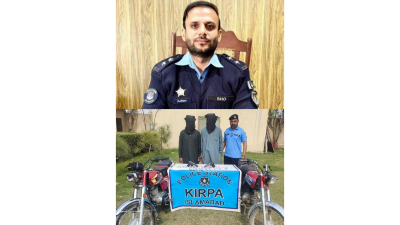 اسلام آباد (ڈیجیٹل پوسٹ) ایس ایچ او تھانہ کرپا ذوالفقار علی کی سربراهی میں پولیس ٹیم علاقے میں جرائم پیشہ افراد کیخلاف کاروائی ۔ موٹر سائیکل سنیچنگ چوری کی وارداتوں میں ملوث دو ملزمان گرفتار ۔ گرفتار افراد سے اسلحہ کی نوک پر چھینا گیا اور چوری شدہ موٹرسائیکل بمہ اسلحہ برآمد ۔