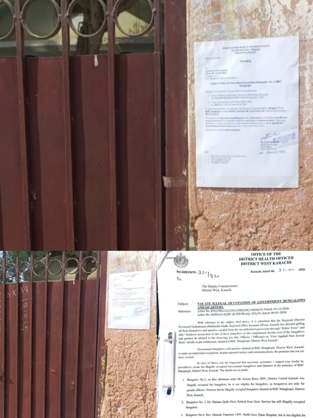 کراچی (ڈیجیٹل پوسٹ) آر ایچ سی منگھوپیر کے سرکاری بنگلوں اور کوارٹرز پر غیر قانونی قبضے کا انکشاف