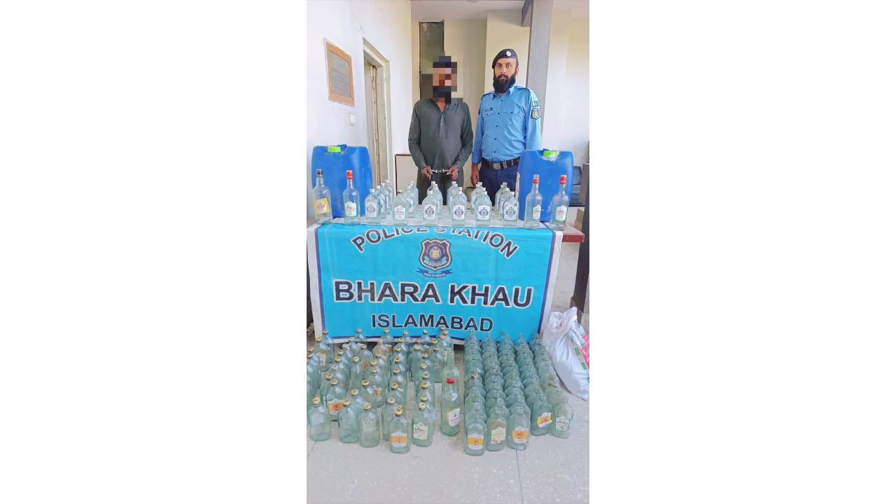 اسلام آباد (ڈیجیٹل پوسٹ) تھانہ بھارہ کہو کے ایس ایچ او تنویر حسین میکسی کی بڑی کاروائی گھر میں شراب کی بڑی کھیپ پکڑ لی 120 لیٹر شراب برامد مقدمہ درج