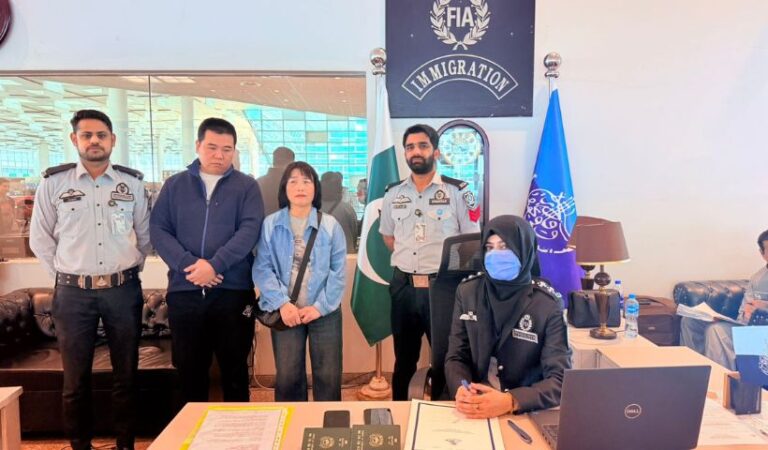 اسلام آباد (ڈیجیٹل پوسٹ) فیڈرل انویسٹی گیشن ایجنسی (ایف آئی اے)امیگریشن ونگ، اسلام آباد زون نے اسلام آباد انٹرنیشنل ایئر پورٹ پر غیر قانونی امیگریشن کی کوشش کو بروقت کارروائی کرتے ہوئے ناکام بنا دیا۔13 مارچ 2026 کو معمول کی امیگریشن کلیئرنس کے دوران دو مسافروں چونگا چائے (پاسپورٹ نمبر M96860953)اور چونجا سن(پاسپورٹ نمبر M96860880) کو، جو پی آئی اے کی پرواز781 کے ذریعے کینیڈا جا رہے تھے