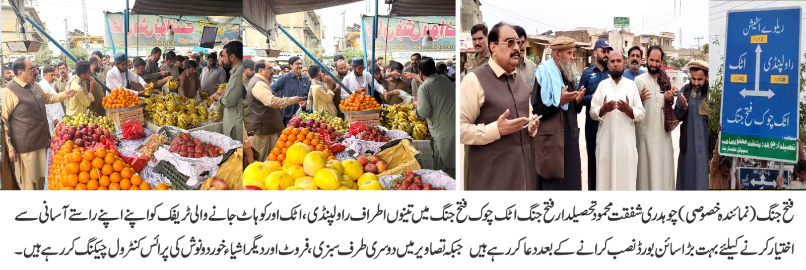 فتح جنگ (ڈیجیٹل پوسٹ) تحصیلدار و پرائس کنٹرول مجسٹریٹ چوہدری شفقت محمود نے عوامی مسائل کے فوری اور مؤثر حل کے لیے ایک بار پھر مثالی کارکردگی کا مظاہرہ کرتے ہوئے اٹک چوک پر رہنمائی کے واضح سائن بورڈ کی تنصیب یقینی بنا دی
