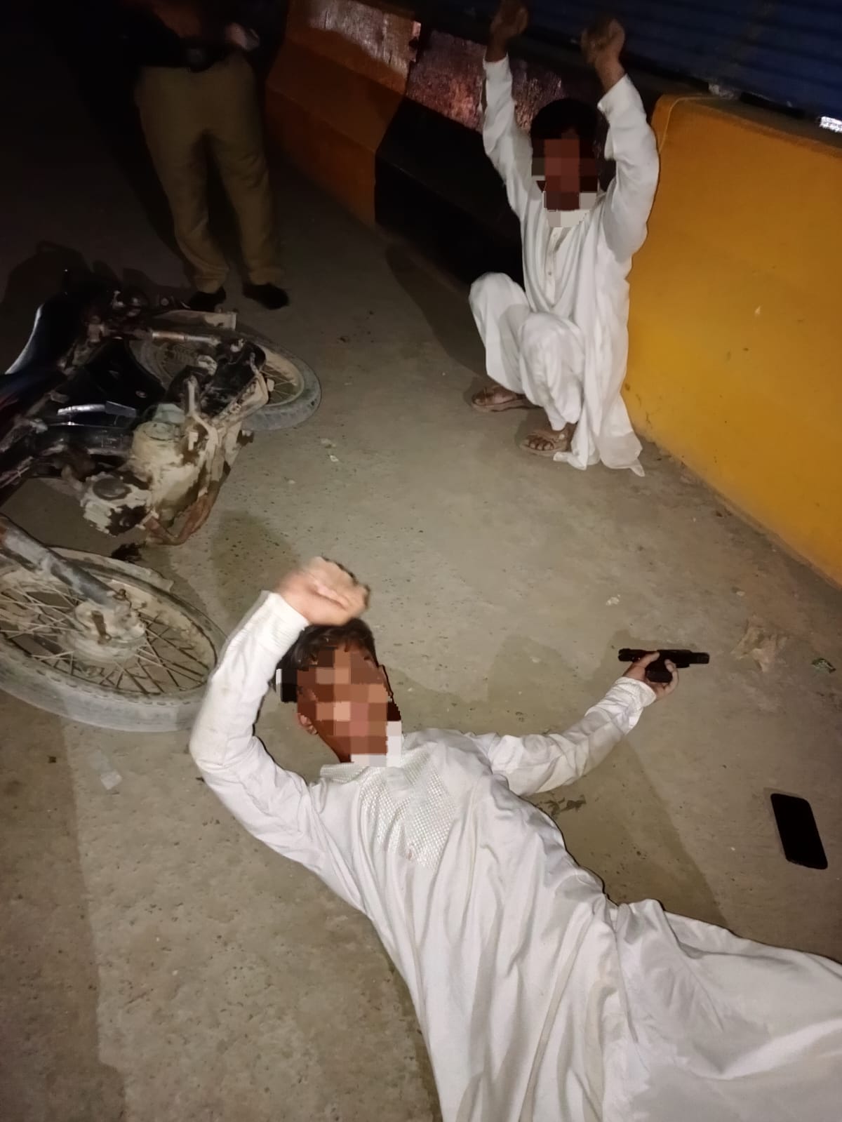 Police recovered illegal pistols with ammunition, mobile phones, and cash from their possession. The motorcycle used by the suspects was also taken into custody.