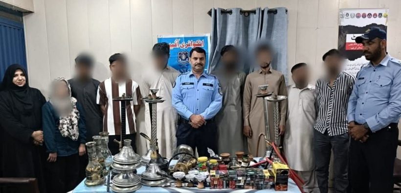 ایس ایچ او انسپکٹر آصف خان کی قیادت میں کی گئی کارروائی کے دوران 9 سٹیل کے حقے، 3 شیشے کے حقے، 30 فلیور ڈبیاں، 7 پلاسٹک پائپ اور 15 ٹوپیاں برآمد کی گئیں۔