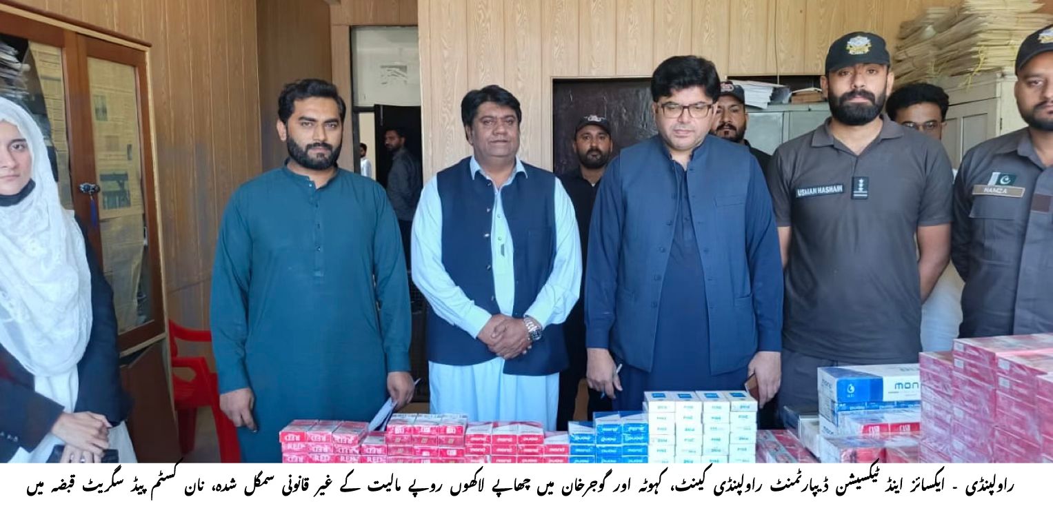 راولپنڈی (ڈیجیٹل پوسٹ) ایکسائز اینڈ ٹیکسیشن ڈیپارٹمنٹ راولپنڈی نے گزشتہ 24 گھنٹے کے دوران راولپنڈی، کہوٹہ اور گوجرخان میں چھاپے مار کر لاکھوں روپے مالیت کے غیر قانونی سمگل شدہ، نان کسٹم پیڈ سگریٹ قبضہ میں لے لئے