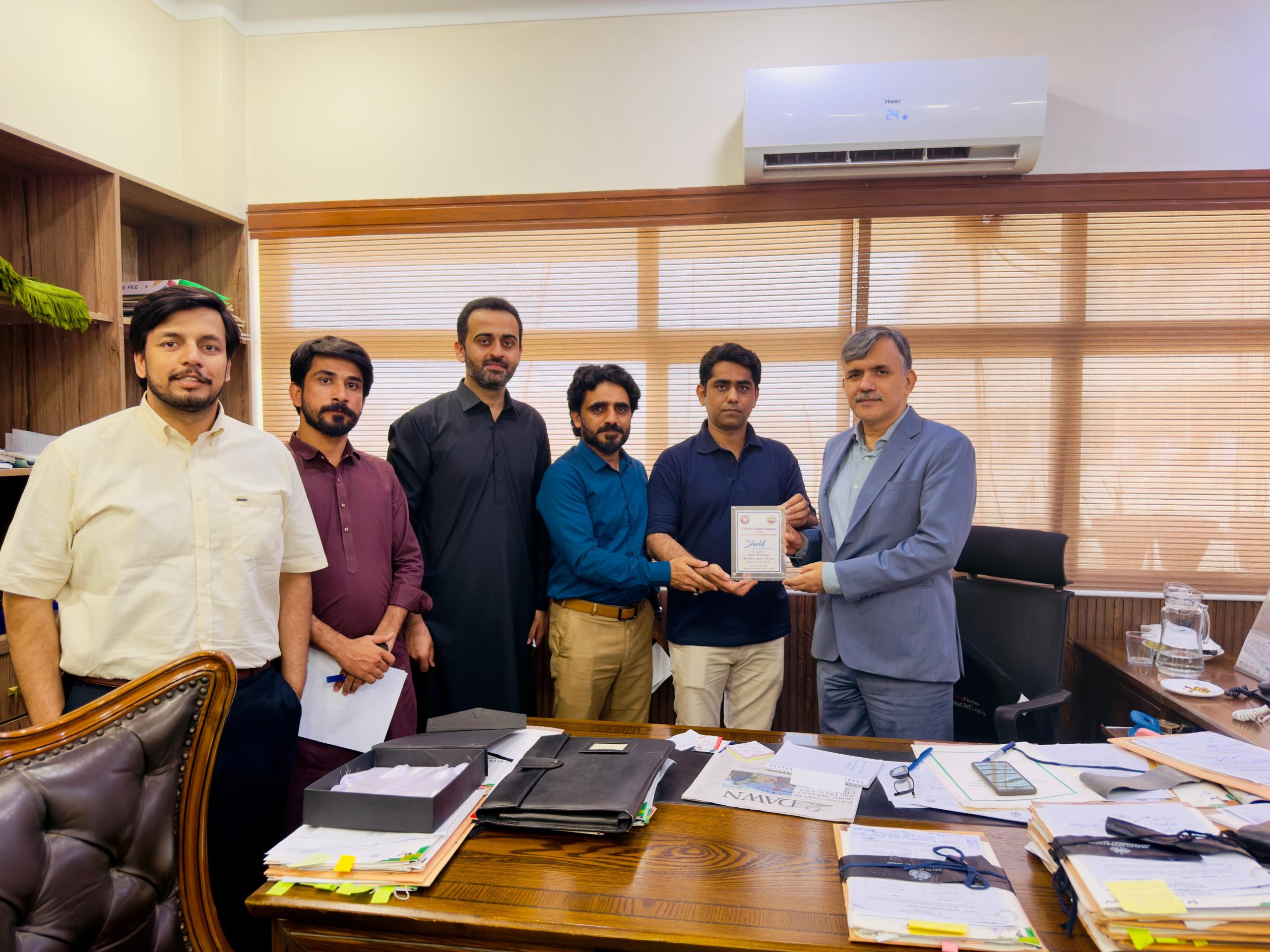 The delegation included Dr. Mehboob Noonari (Chairman), Dr. Roshan Chandio (President), Dr. Mehran Khan Shar (Vice Chairman), and Dr. Ammar Danish (President YDA JPMC).