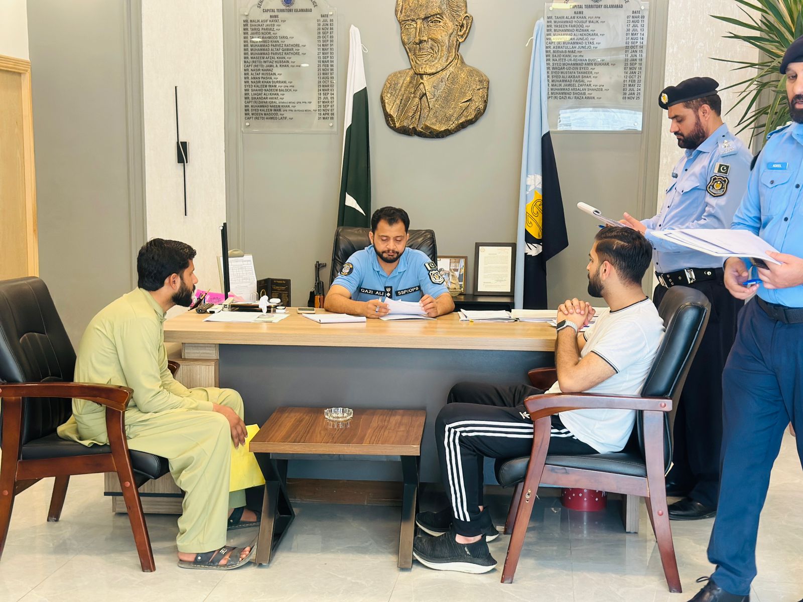 اسلام آ باد (ڈیجیٹل پوسٹ) اسلام آ باد پولیس عوام کی خدمت کے مشن پر گا مزن۔ایس ایس پی آپریشنز اسلام آ باد قاضی علی رضا کا اوپن ڈور پالیسی کے تحت شہر یو ں کے مسائل کے فوری حل کے لئے کھلی کچری کاانعقاد۔شہر یو ں کی شکا یا ت سن کر متعلقہ افسران کو فوری حل کے احکا ما ت جا ری کئے۔ تفصیلات کے مطابق انسپکٹر جنرل آف پولیس اسلام آباد سید علی ناصر رضوی کے خصوصی احکامات کی روشنی میں ایس ایس پی آپریشنز اسلام آباد قاضی علی رضا نے اوپن ڈور پا لیسی کے تحت شہریوں کے مسائل کی فوری دادرسی کو یقینی بنانے کیلئے اپنے دفتر میں کھلی کچہری کا انعقاد کیا۔کھلی کچہریوں میں شہر یو ں نے اپنے مسائل کے حل کے لئے اپنی شکا یا ت پیش کیں۔ ایس ایس پی آپریشنز اسلام آباد نے شہریوں کے مسائل سنے اور ان کے فوری حل کے لئے متعلقہ افسران کو مارک شدہ درخواستوں پر دیئے گئے وقت میں قانونی کارروائی کرکے رپورٹ پیش کرنے کے احکامات جاری کئے۔انہوں نے کہا کہ اسلام آ باد پولیس خو اتین اور بچوں پر تشدد کے حوالے سے زیرو ٹا ولرنس پالیسی پر عمل پیر ا ہے۔ شہر یو ں کو ہرممکن ریلیف مہیا کر نا اولین تر جیح ہے۔قانو ن کی بالا دستی کو ہر صورت یقینی بنا یا جا ئے گا۔ انہو ں نے مزید کہا کہ ہر شہری کو مساوی حقوق حاصل ہیں۔ تمام درخواستوں پر میرٹ پر فیصلے کئے جائیں گے۔شہریوں کی جان، مال اور عزت نفس کا تحفظ مقدم ہے