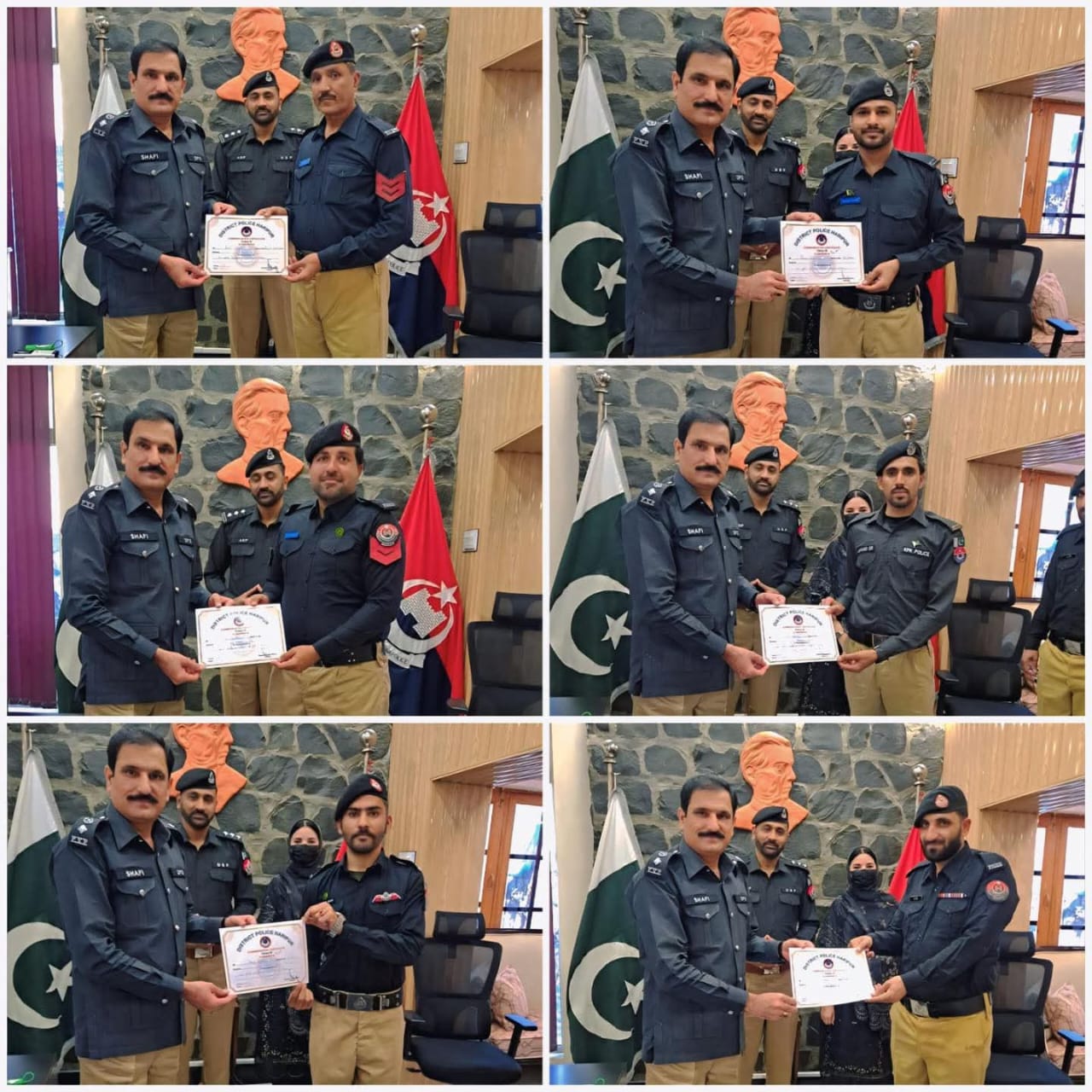 ہری پور (ڈیجیٹل پوسٹ) ڈی پی او ہری پور شفیع اللہ گنڈاپور نے ڈی ایس پی سرکل صدر محمد عارف کی زیر نگرانی آن لائن ایف آئی آر میں ضلع بھر میں نمایاں کارکردگی کا مظاہرہ کرنے والے سرکل صدر اور تھانہ سٹی ، تھانہ سرائے صالح،تھانہ غازی اور تھانہ ناڑہ آمازئی کے پولیس افسران ،جوانوں اور لیڈی پولیس کو تعریفی سرٹیفکیٹ دیے ۔