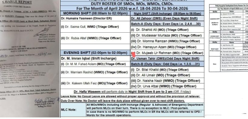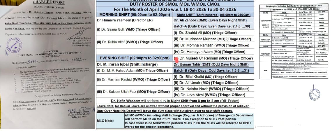 رحیم یارخان (ڈیجیٹل پوسٹ) تحصیل ہیڈکوارٹر ہسپتال صادق آباد میں تعیناتیوں اور انتظامی امور سے متعلق ایک معاملہ شہری حلقوں میں تشویش کا باعث بن گیا ہے