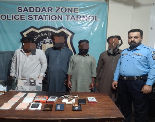 اسلام آباد (ڈیجیٹل پوسٹ) ڈکیتی اور راہزنی میں ملوث خطرناک گروہ کے پانچ ارکان گرفتار۔گرفتار ملزمان کے قبضہ سے گن پوائنٹ پر چھینے ہوئے لاکھوں روپے مالیت کے قیمتی موبائل فون ، نقدی اور موبائل اسسریز برآمد
