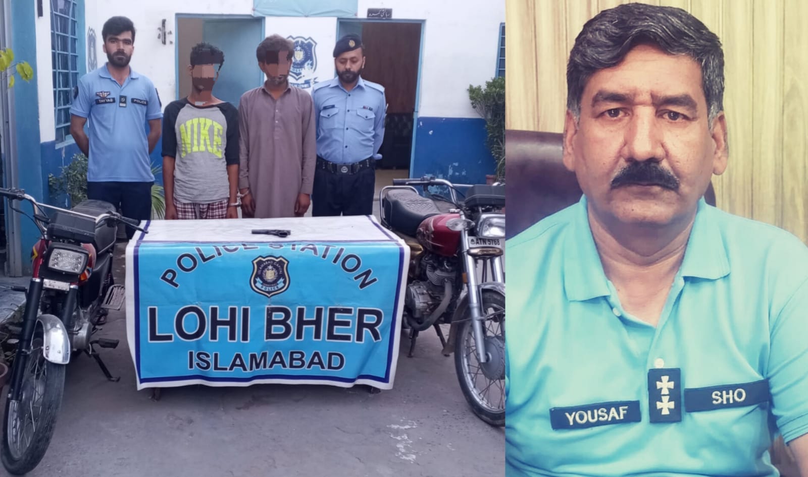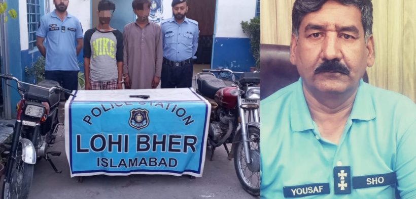 اسلام آباد (ڈیجیٹل پوسٹ) ایس ایچ او تھانہ لوھی بھیر یوسف جٹ کی ہمراہ سجاد احمد ایس آئی ۔انجم نثار ایچ۔سی رحمت ایچ۔سی کے کاروائی ۔ موٹرسائیکل چوری کی وارداتوں میں ملوث 2 افراد گرفتار 02 موٹرسائیکل بمہ پسٹل برآمد مزید تفتیش جاری ۔تفصیلات کے مطابق ایس ایچ او تھانہ لوھی بھیر کی سربراهی میں پولیس نے علاقے میں جرائم پیشہ عناصر کیخلاف کریک ڈاؤن جاری رکھتے ہوئے سجاد احمد سب انسپکٹر نے ہمراہ انجم نثار ایچ۔سی . رحمت ایچ۔سی کے موٹرسائیکل چوری کی وارداتوں میں ملوث 2 رکنی گینگ کو مقدمہ نمبر896/ 26 جرم 381 ۔ 244/26 بجرم 381 کےتحت گرفتار کر کے دوران تفتیش 02 موٹرسائیکل 125 سمیت وارداتوں میں استعمال ہونے والا اسلحہ پسٹل 30 بور بمہ روند برآمد کر لیا جبکہ پولیس کے مطابق گرفتار افراد سے مزید تفتیش جاری ھے ۔ ایس پی سواں زون خرم اشرف نے پولیس ٹیم کو شاباش دیتے ہوئے کہا کہ گرفتار افراد کو ٹھوس شواہد پر چالان عدالت پیش کیا جائے گا ۔