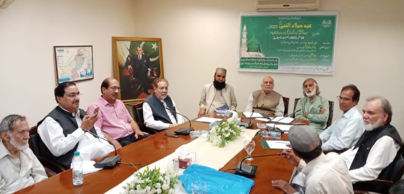 اس باسعادت تقریب کی ابتداء میں جن معروف شعراء نے ہدیہ نعت بحضور سرور کونین ص پیش کیا ان میں محمد عرفان خان، پروفیسر عرفان جمیل، عبد القادر تاباں، علی احمد قمر اور مہمان اعزاز وفا چشتی شامل تھے۔ کونسل کے چیئرمین اور صاحب صدارت میاں محمد جاوید نے کہا کہ ایک بار قائد اعظم رح کو محفل میلادالنبی ص سے خطاب کی دعوت دی گئی۔ قائد اعظم رح نے سٹیج پر آکر کہا کہ رسول پاک صلیٰ اللہ علیہ وآلہ وسلم جیسی عظیم اور معتبر ہستی کے بارے میں میری کیا مجال کہ کچھ کہہ سکوں۔ اس وقت میری کیفیت بھی کچھ ویسی ہی ہے تاہم اتنا کہتا چلوں کہ نظریہ پاکستان کونسل بھی کام کو آگے بڑھانے کیلئے قرآن وسنت سے روشنی حاصل کرتی ہے۔ کونسل اپنے قومی ہیروز کے خصوصی ایام پر تقریبات کے ذریعے اپنی نئی نسل خصوصاً طلبہ سےروشناس کراتی رہے گی۔آخر میں ڈاکٹر حافظ محمد ظہیر نے این پی سی کے بانی چیئرمین اور ممتاز صحافی و دانشور زاہد ملک کیلئے دعائے مغفرت اور ملک و قوم کی سلامتی، ترقی و خوشحالی کیلئے اجتماعی دعا کروائی۔