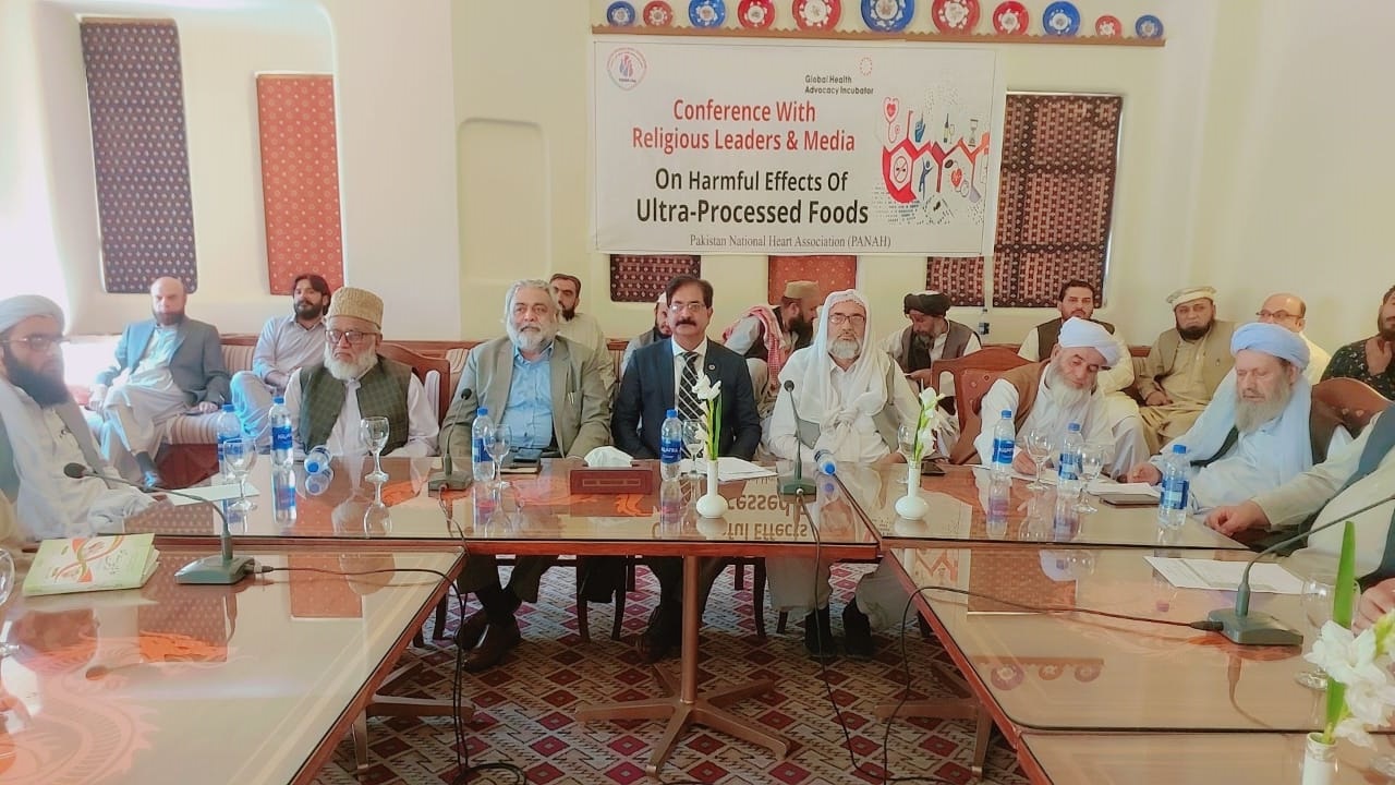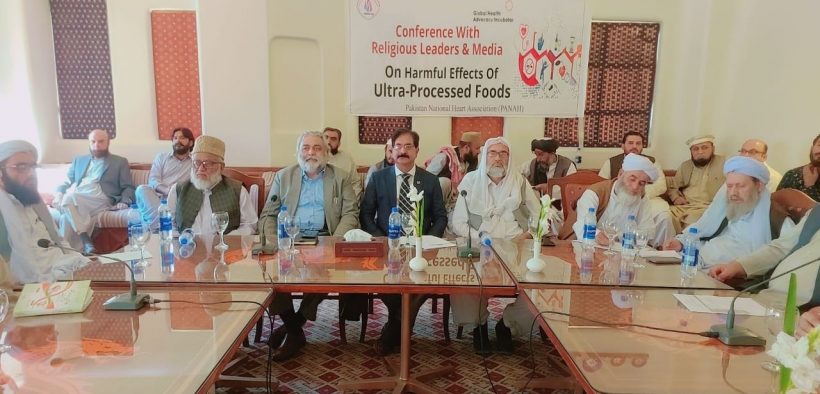 کوئٹہ۔ غیر متعدی امراض (NCDs) جیسے دل، زیابیطس گردوں کے امراض، فالج اور کئی قسم کے کینسر پاکستان میں آسمان کو چھو رہے ہیں۔ غیر صحت مند خوراک جیسے الٹرا پروسیسڈ فوڈزان بیماریوں کی بڑی وجوہات میں سے ایک ہیں۔ علماء اور میڈیا غیر صحت بخش خوراک کے متعلق لوگوں میں آگائی میں اہم کردار ادا کر سکتے ہیں۔ یہ بات مائرین صحت نے الٹرا پراسیسڈ فوڈز کے صحت پر ہونے والے نقصانات پر علماء کے ساتھ ایک پروگرام میں کئی۔ پروگرام کا انعقاد کوئٹہ کے ایک مقامی ہوٹل میں کیا گیا۔ جن لوگوں نے پروگرام میں شرکت کی ان میں مولانا انوارالحق حقانی، ڈاکٹر عطاء الرحمن، مولانا محمد جان قاسمی، پیر حبیب اللہ چشتی، علامہ ہاشم موسوی، جناب سید نقیب اللہ آغا، سابقہ کمشنر عبدلحفیظ، علماء، سول سوسائٹی اور صحافیوں کی بڑی تعداد نے شرکت کی۔ ڈائریکٹر جنرل ہیلتھ ڈاکٹر نورمحمد قاضی مہمان خصوصی تھے۔ تقریب کی میزبانی پناہ کے سیکریٹری جنرل ثناہ اللہ گھمن نے کی۔