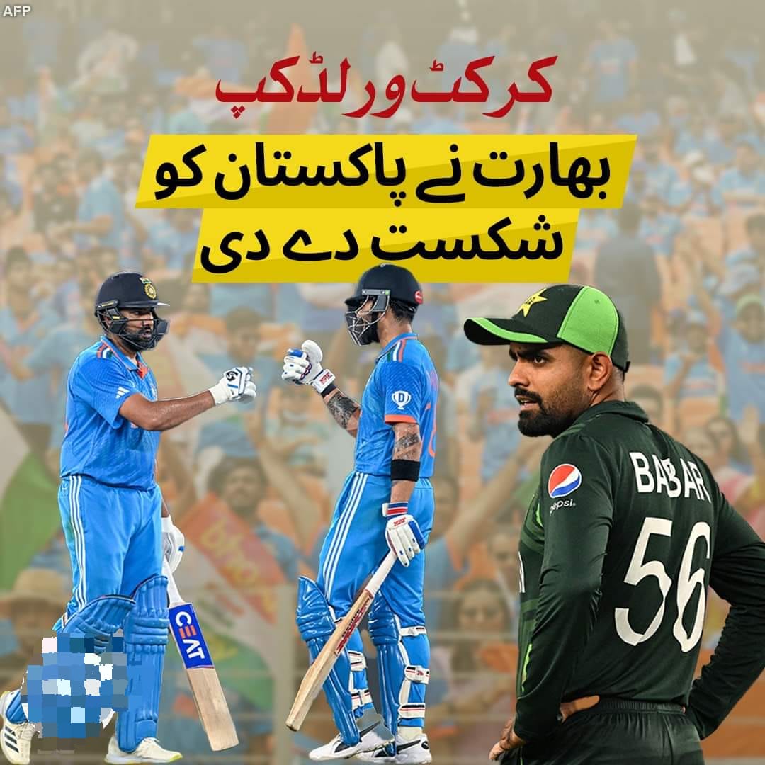 BREAKING NEWS National اسلام آباد (ڈیجیٹل پوسٹ) کرکٹ ورلڈکپ کے بارہویں میچ میں بھارت نے پاکستان کو چھ وکٹوں سے شکست دے دی Dailydigitalpost October 14, 2023 Share ۔ پاکستان کی جانب سے 192 رنز کا ہدف بھارت نے 31ویں اوور میں حاصل کیا۔ بھارتی کپتان روہت شرما نے 63 گیندوں پر 86 رنز کی نمایاں اننگز کھیلی۔