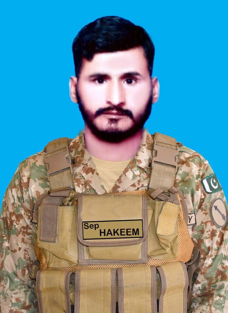 However, during intense exchange of fire, Sepoy Abdul Hakeem (age 33 years, resident of District Naseerabad) having fought gallantly, embraced Shahadat.