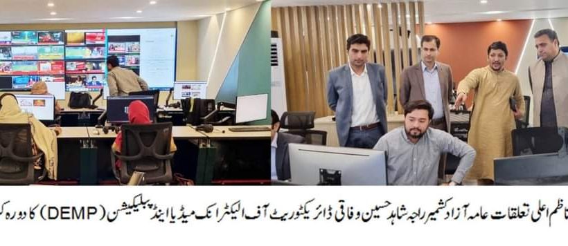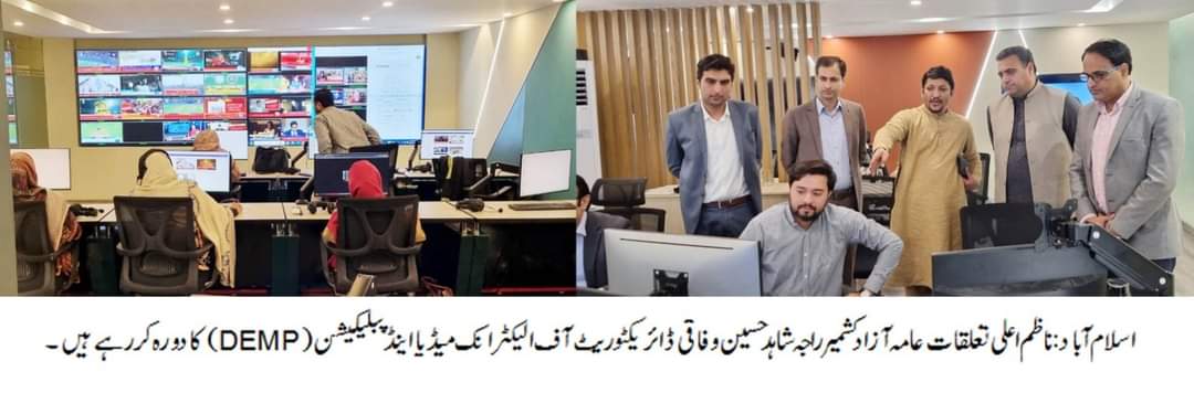اسلام آباد (ڈیجیٹل پوسٹ) ناظم اعلی تعلقات عامہ آزاد حکومت ریاست جموں وکشمیر راجہ شاہد حسین کا وفاقی ڈائریکٹوریٹ آف الیکٹرانک میڈیا اینڈ پبلیکیشن کا دورہ۔