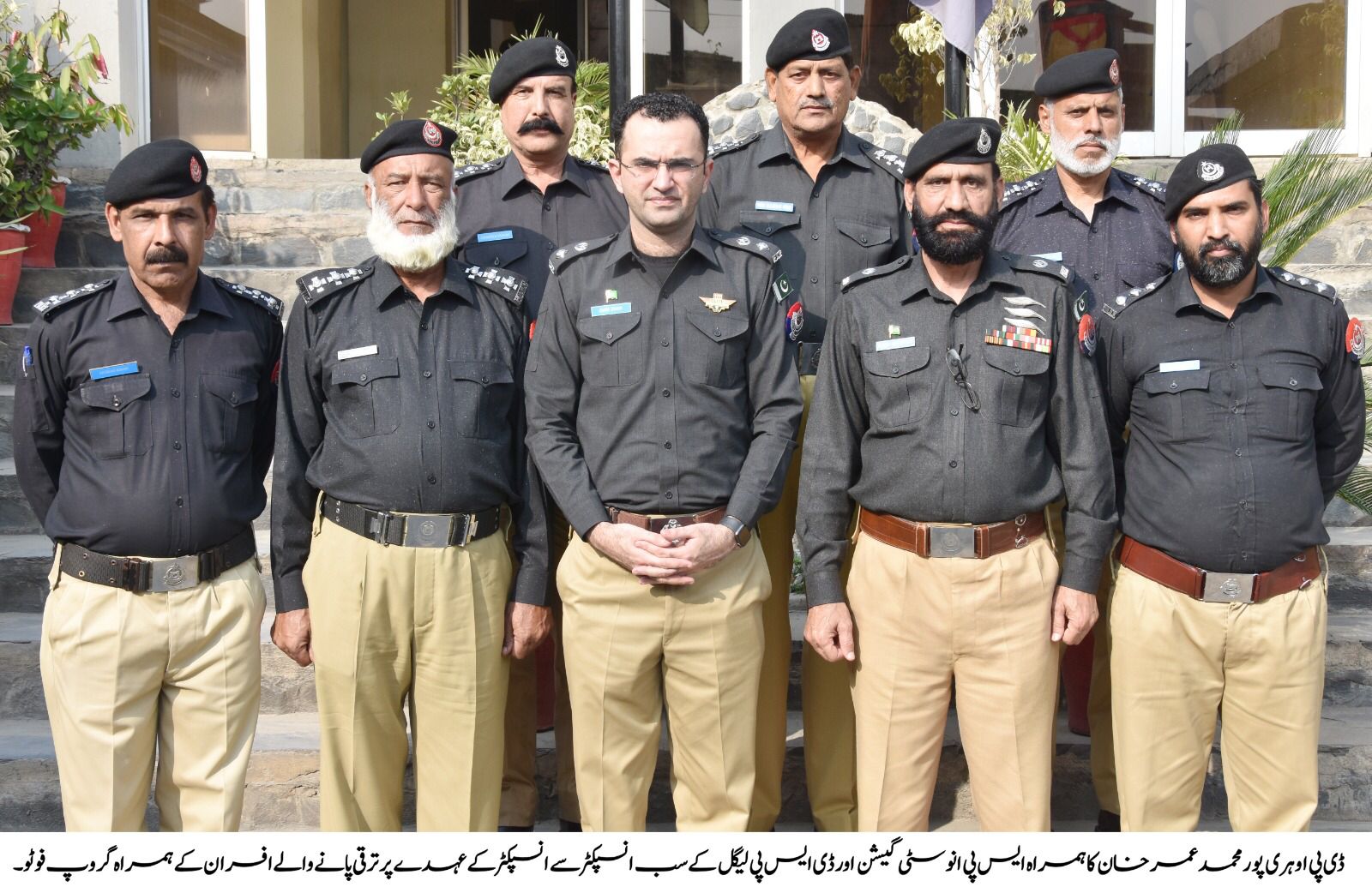 سب انسپکٹر سے انسپکٹر پروموٹ ہونے والے افسران میں گل نواز خان ،حبیب الرحمان ،عبدالجلیل، ارشد خان،چن زیب تنولی شامل ہیں ۔