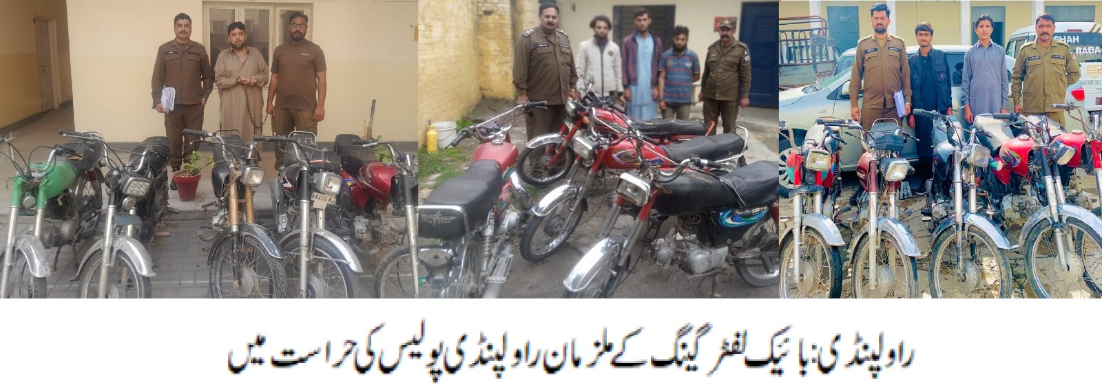 راولپنڈی(ڈیجیٹل پوسٹ) راولپنڈی پولیس کا موٹر سائیکل لفٹرز کے خلاف کریک ڈاؤن